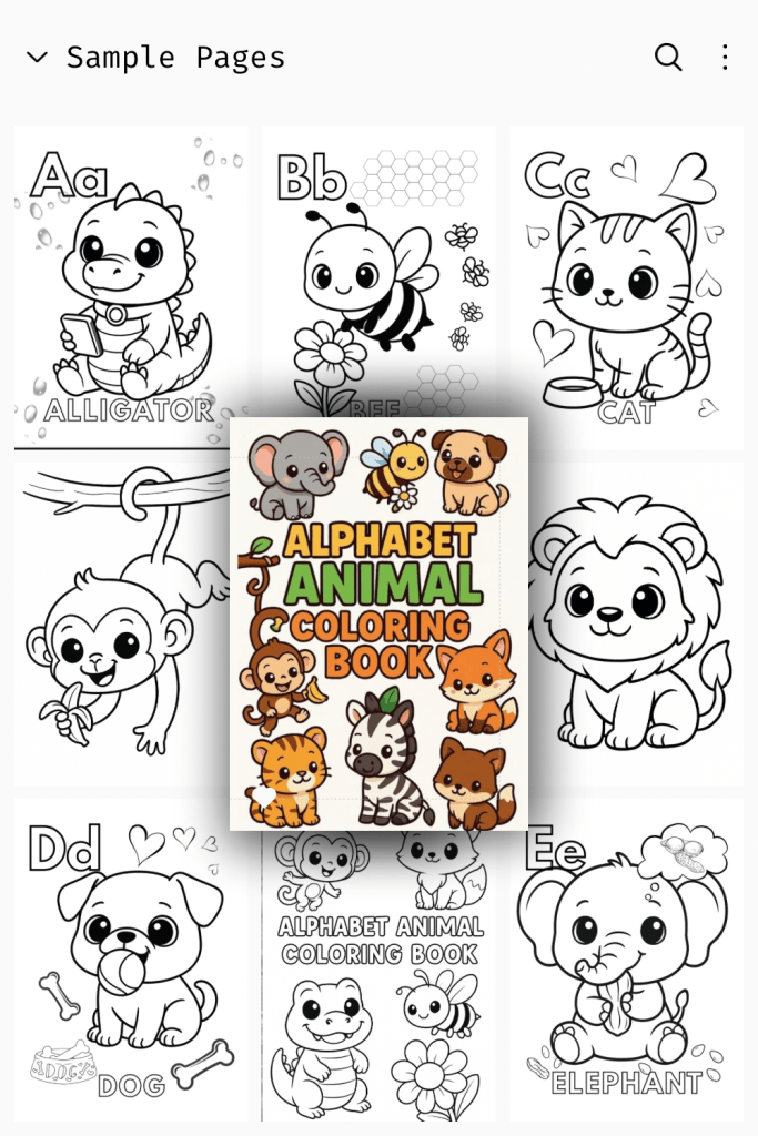 - 26 hand-drawn chibi animal illustrations—one for each letter